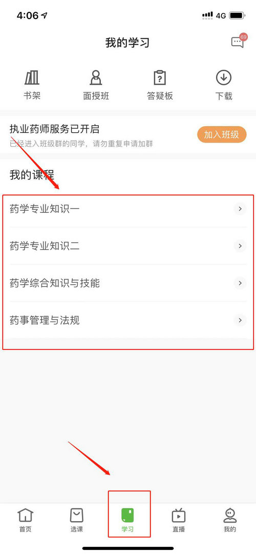 2、點擊“學(xué)習(xí)”,選擇你要學(xué)的科目。