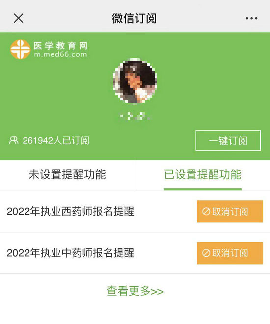 4、訂閱成功!在“已設(shè)置提醒功能”就能直接看到啦。屆時,2022年執(zhí)業(yè)藥師考試報名時間一出,大家就能收到提醒消息。
