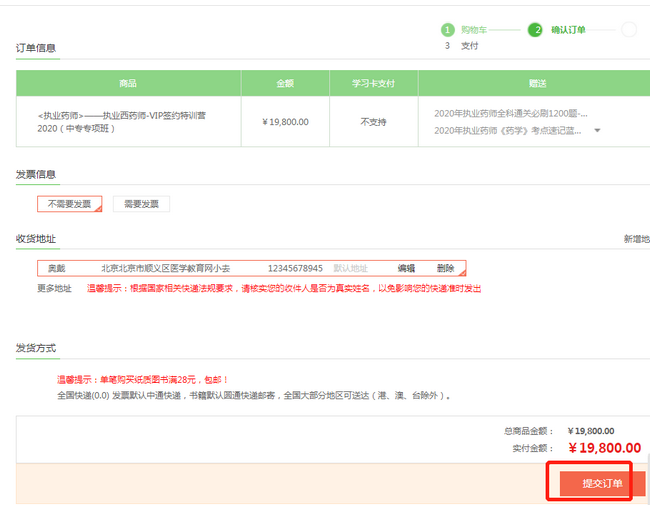 第三步:在訂單頁確認(rèn)購買的課程,點(diǎn)擊“提交訂單”