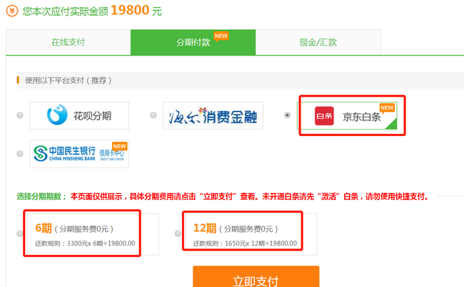 第四步:支付時(shí)選擇分期付款,京東白條,分期期數(shù)選擇6或12期!只剩今天最后一天了!