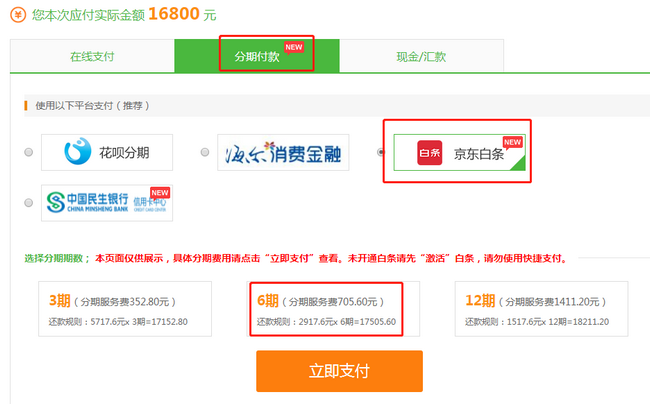 特別提醒:只有6期分期購(gòu)買(mǎi)服務(wù)費(fèi)為0元,其他期數(shù)暫時(shí)沒(méi)有優(yōu)惠。