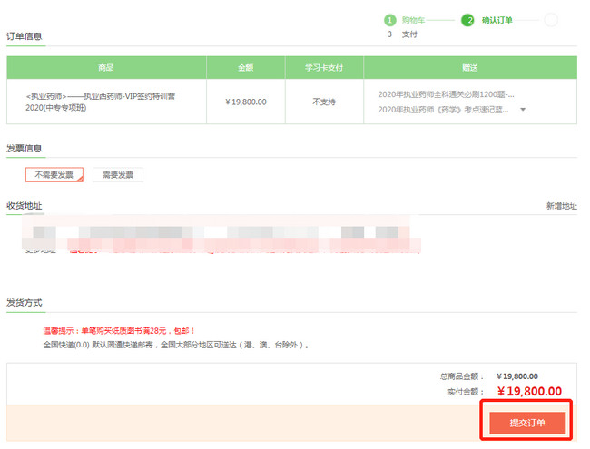 第三步:在訂單頁(yè)確認(rèn)無(wú)誤后,點(diǎn)擊“提交訂單”;
