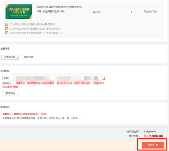 第二步:在購物車內(nèi)確認(rèn)已選擇的課程,確認(rèn)無誤后點(diǎn)擊“提交訂單”;