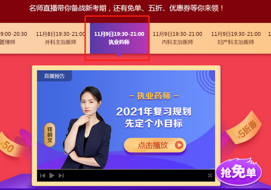 網(wǎng)校專業(yè)師資直播帶你備戰(zhàn)新考期,還有免單、五折、優(yōu)惠券等你來領(lǐng)!