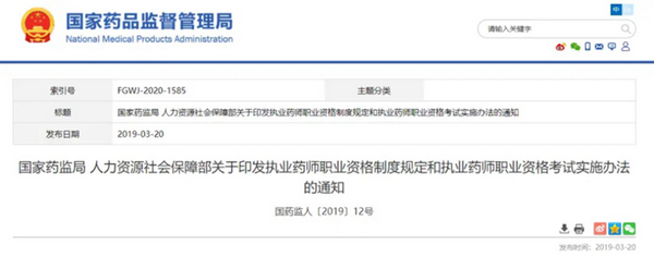 2019年3月20日,國家藥監(jiān)局,人力資源社會保障部發(fā)布了《關(guān)于執(zhí)業(yè)藥師職業(yè)資格制度規(guī)定和執(zhí)業(yè)藥師職業(yè)資格考試實施辦法的通知》。其中第六章第三十一條明確:專業(yè)技術(shù)人員取得執(zhí)業(yè)藥師職業(yè)資格,可認(rèn)定其具備主管藥師或主管中藥師職稱,并可作為申報高一級職稱的條件。單位根據(jù)工作需要擇優(yōu)聘任。