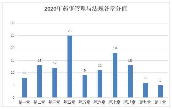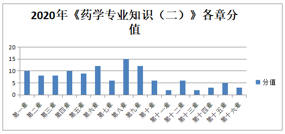 藥二分值來看,分值比較高的第一、二、三、四、五、六、八、九章八個章節(jié),總分值達(dá)84分,是拿分的重要章節(jié)。但從圖中也可以感受到,現(xiàn)在各章分值正在平均化,同樣的特點也可以從藥綜、法規(guī)中體現(xiàn)。