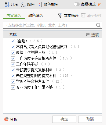 未通過(guò)的原因有8種,如下圖所示。其中“工作崗位不符合報(bào)考條件”、“未在規(guī)定期限內(nèi)提交材料”所占人數(shù)最多,另外還有關(guān)于工作年限與報(bào)名條件不符的原因。