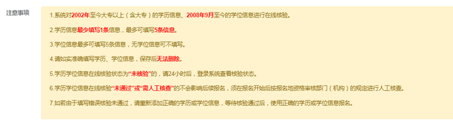 3、報考人員注冊時填寫學(xué)歷學(xué)位信息需要注意哪些事項?