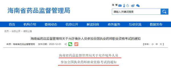 12月1日,海南省藥品監(jiān)督管理局發(fā)布了《海南省藥品監(jiān)督管理局關(guān)于允許境外人員參加全國(guó)執(zhí)業(yè)藥師職業(yè)資格考試的通知》。醫(yī)學(xué)教育網(wǎng)小編整理如下: