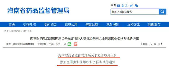 去年12月1日,海南省藥品監(jiān)督管理局發(fā)布了《海南省藥品監(jiān)督管理局關于允許境外人員參加全國執(zhí)業(yè)藥師職業(yè)資格考試的通知》。