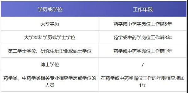 工作年限,是指報考人員取得規(guī)定學(xué)歷前后工作時間的總和,其截止日期為當(dāng)年年底。工作年限包括兩點要求,一是工作年限滿足要求,二是從事藥學(xué)或中藥學(xué)崗位工作年限滿足要求。具體如下:
