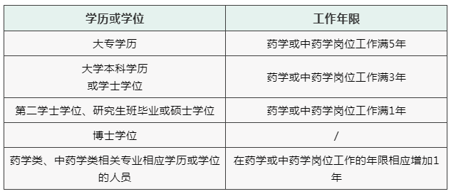 5.取得藥學(xué)類、中藥學(xué)類相關(guān)專業(yè)相應(yīng)學(xué)歷或?qū)W位的人員,在藥學(xué)或中藥學(xué)崗位工作的年限相應(yīng)增加1年。