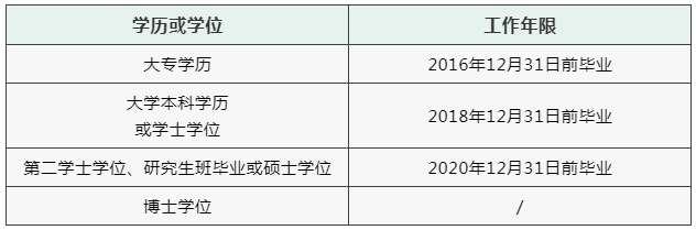 學(xué)歷不同,工作年限要求不同,具體要求如下。