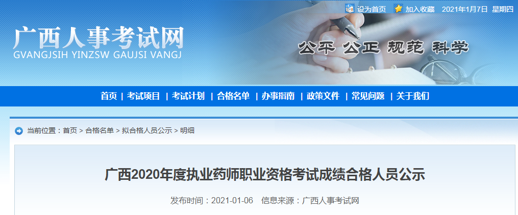 廣西2020年執(zhí)業(yè)藥師考試成績(jī)合格人員公示(4801人合格)