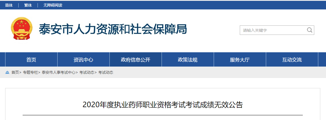 山東泰安2020年度執(zhí)業(yè)藥師資格考試3人考試成績(jī)無效公告