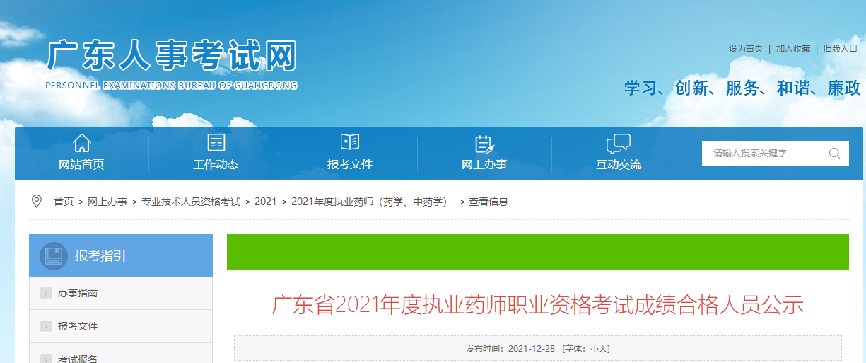 廣東省2021年度執(zhí)業(yè)藥師職業(yè)資格考試成績(jī)合格人員公示