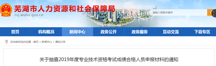 關(guān)于抽查2019年度專(zhuān)業(yè)技術(shù)資格考試成績(jī)合格人員申報(bào)材料的通知