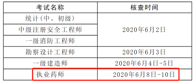 常德考區(qū)2019年度一級建造師、執(zhí)業(yè)藥師、統(tǒng)計(jì)(中、初級)、勘察設(shè)計(jì)工程師、中級注冊安全工程師和一級消防工程師資格考試考后人工核查時間定于2020年6月進(jìn)行,具體時間安排如下: