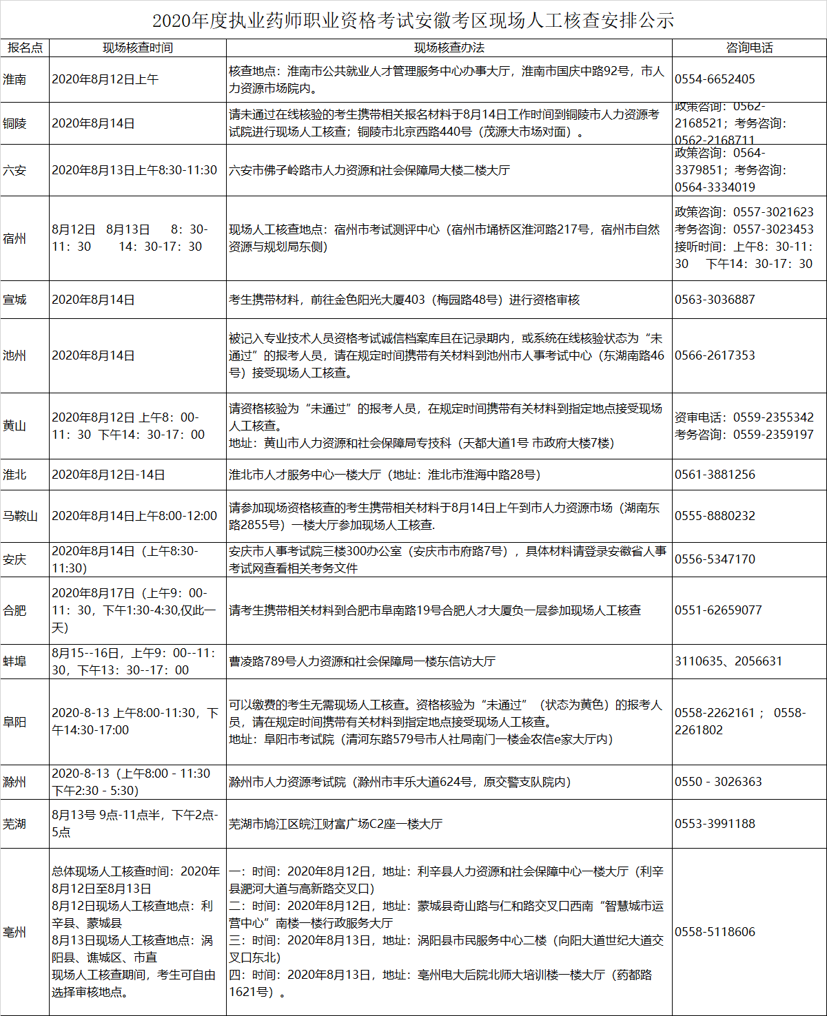 安徽省2020年執(zhí)業(yè)藥師考試現(xiàn)場(chǎng)人工核查安排公示!