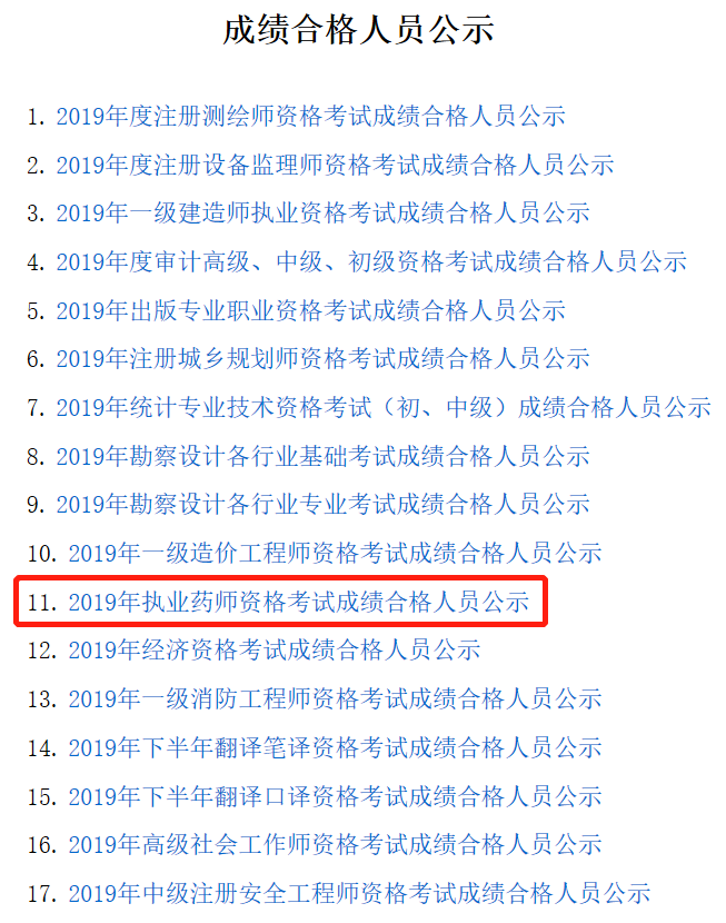 點擊查看>>遼寧省2019年執(zhí)業(yè)藥師考試成績合格人員名單