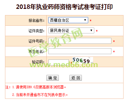 2018年西藏自治區(qū)執(zhí)業(yè)藥師準考證打印入口:
