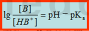 pKa是解離常數(shù);pH是體液的pH;[HA]/[B]是非解離型酸/堿藥物濃度;[A-]/[HB+]是解離型酸/堿藥物濃度。