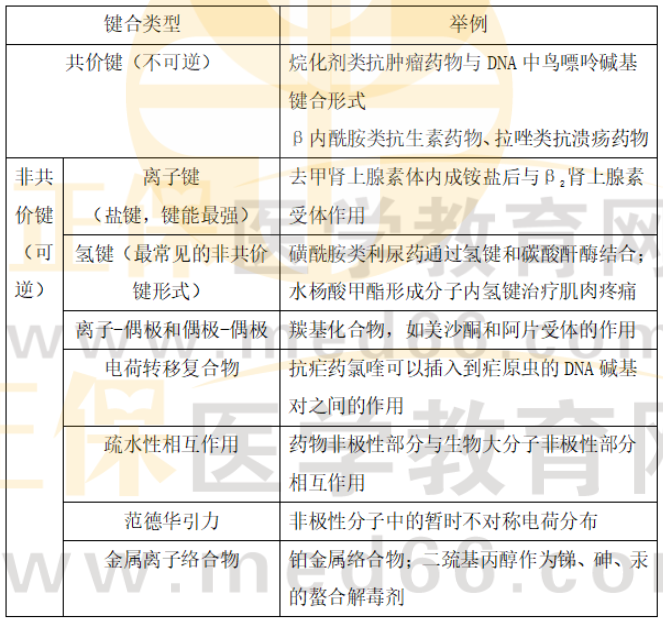 以上是醫(yī)學(xué)教育網(wǎng)小編為大家整理的“《藥一》知識點(diǎn):藥物與作用靶標(biāo)結(jié)合的化學(xué)本質(zhì)”,希望以上內(nèi)容對大家有幫助!更多執(zhí)業(yè)藥師考試相關(guān)知識請關(guān)注醫(yī)學(xué)教育網(wǎng)!