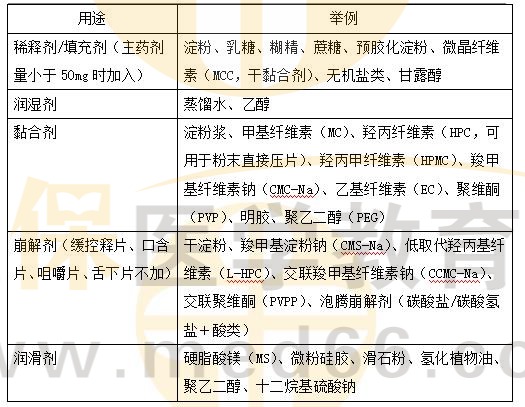 口服固體制劑的常用輔料(稀釋劑、潤濕劑、黏合劑、崩解劑、潤滑劑)