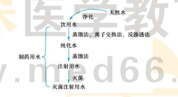 (1)制藥用水:①純化水:飲用水經(jīng)蒸餾法、離子交換法、反滲透法等制得的制藥用水;②注射用水:純化水經(jīng)蒸餾所得,作為注射劑、滴眼劑等的溶劑或稀釋劑及容器的清洗溶劑;③滅菌注射用水:注射用水滅菌所得,主要用于注射用滅菌粉末的溶劑或注射劑的稀釋劑。