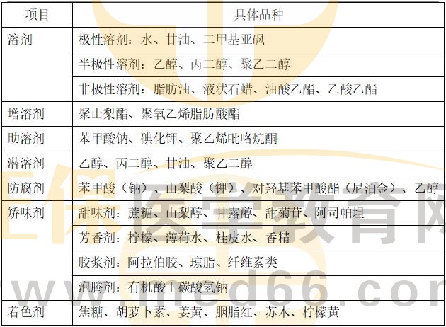 口服液體制劑的溶劑和附加劑