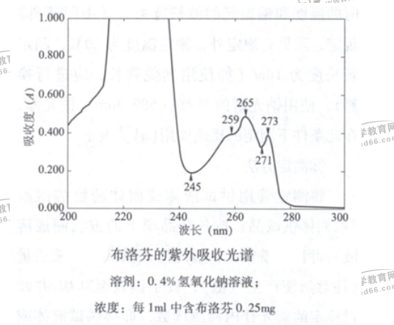 布洛芬的0.4%氫氧化鈉溶液的紫外吸收光譜如下圖所示