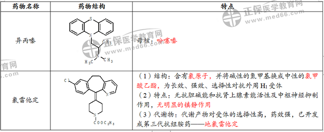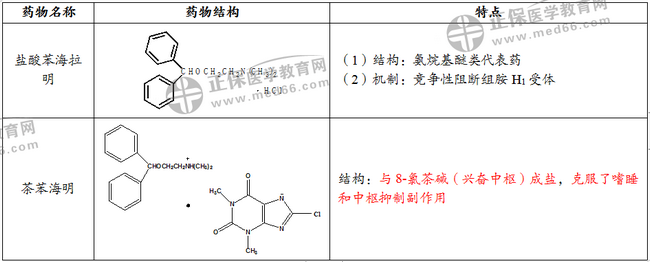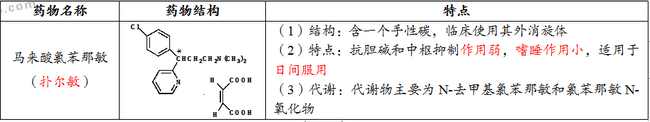 考點四、組胺H1受體阻斷劑抗過敏藥