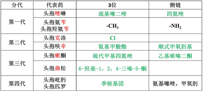 ⑤分代及結(jié)構(gòu)(需要認(rèn)識各個(gè)藥物3位基團(tuán))