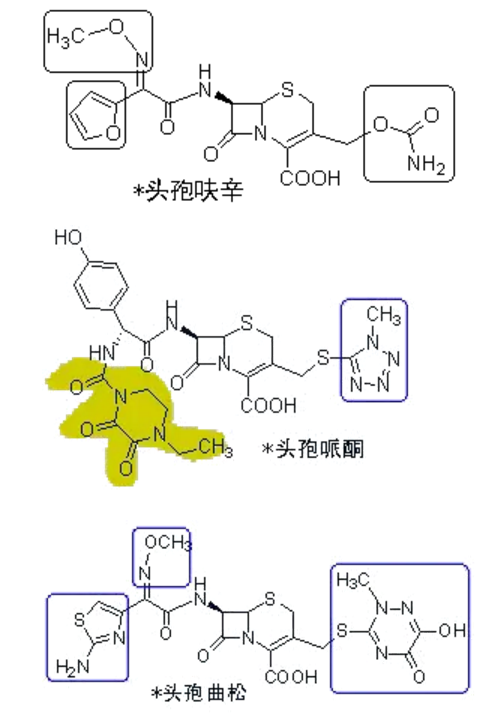 ①基本母核:β內(nèi)酰胺環(huán)+氫化噻嗪