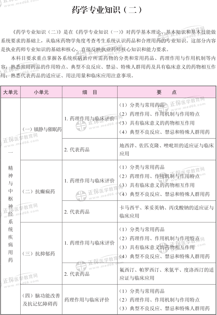 2020年執(zhí)業(yè)西藥師《藥學(xué)專業(yè)知識(二)》考試大綱