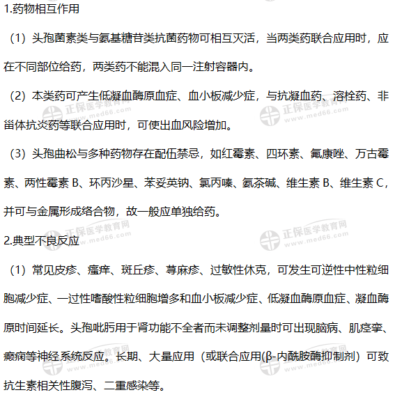 《藥二》練習(xí)題:頭孢菌素類藥物相互作用及典型不良反應(yīng)