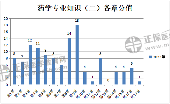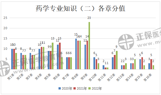 通過對2020~2023年《藥學專業(yè)知識二》考題分析,各章分值如下: