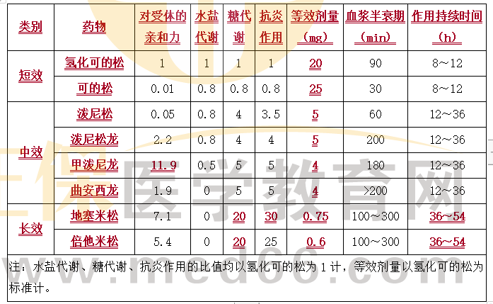 常見(jiàn)的糖皮質(zhì)激素的藥代動(dòng)力學(xué)特征及作用時(shí)間