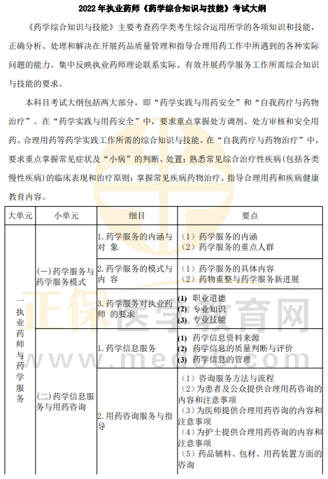 2022年執(zhí)業(yè)西藥師《藥學(xué)綜合知識(shí)與技能》考試大綱