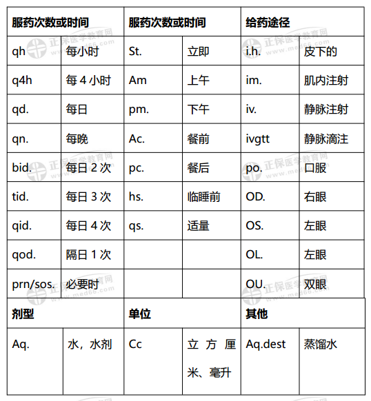 執(zhí)業(yè)藥師藥綜??键c提煉:處方縮寫