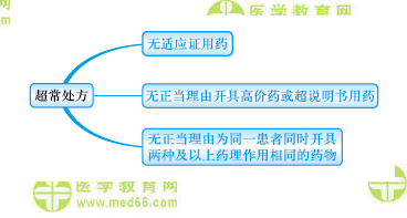 注解:四種“無正當(dāng)理由”的情況中,“無正當(dāng)理由不首選國家基本藥物”屬于用藥不適宜處方。其他三種“無正當(dāng)理由”的情況都屬于超常處方。