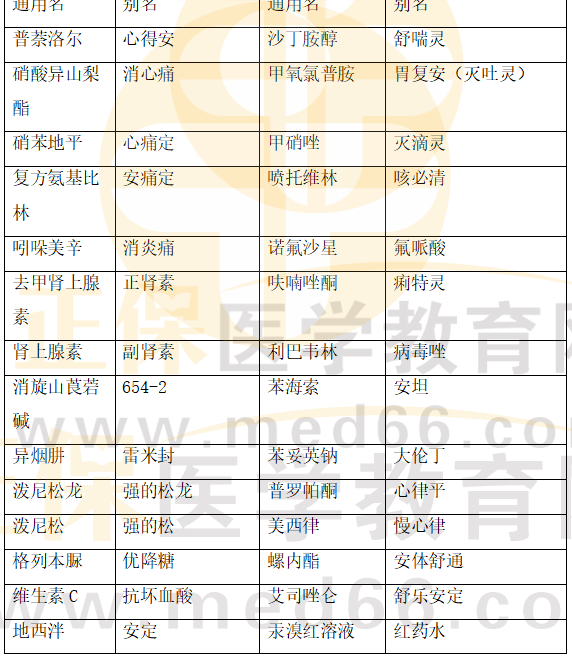 《藥綜》知識(shí)點(diǎn):藥品別名