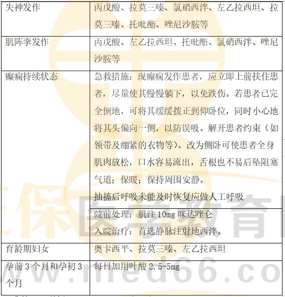 【解析】育齡期婦女酌情選用奧卡西平、拉莫三嗪、左乙拉西坦;孕前3個(gè)月和孕初3個(gè)月每日加用葉酸2.5~5mg。