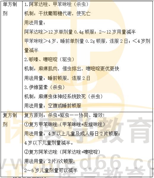 以上是醫(yī)學(xué)教育網(wǎng)小編為大家整理的“《藥綜》知識點:腸道寄生蟲的藥物治療”,希望以上內(nèi)容對大家有幫助!更多執(zhí)業(yè)藥師考試相關(guān)知識請關(guān)注醫(yī)學(xué)教育網(wǎng)!