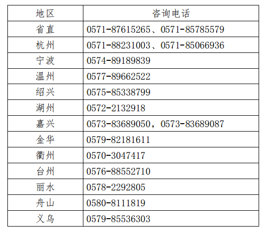 報(bào)考技術(shù)咨詢電話:0571-88396764、88396765,傳真:0571-88396760、88395085。