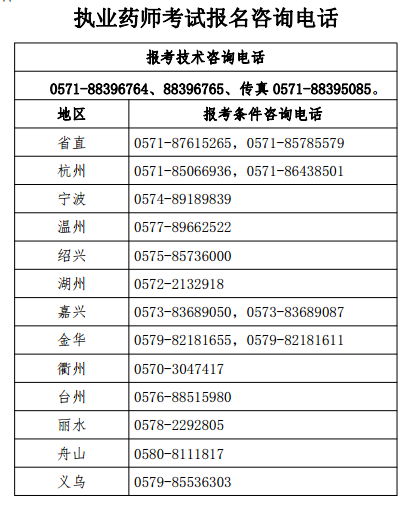 浙江各地2021年執(zhí)業(yè)藥師考試報名咨詢電話匯總!