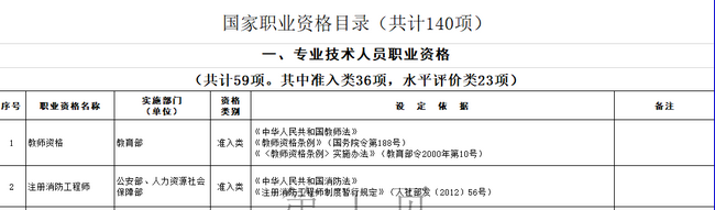 國(guó)家職業(yè)資格目錄專(zhuān)業(yè)技術(shù)人員職業(yè)資格59項(xiàng),含準(zhǔn)入類(lèi)35項(xiàng)(會(huì)計(jì)從業(yè)資格認(rèn)定已于2017年取消),水平評(píng)價(jià)類(lèi)24項(xiàng);技能人員職業(yè)資格81項(xiàng),含準(zhǔn)入類(lèi)5項(xiàng),水平評(píng)價(jià)類(lèi)76項(xiàng)。