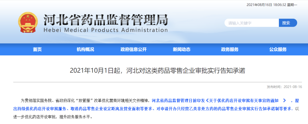 此前,河北省藥監(jiān)局再次發(fā)文強(qiáng)調(diào),將取消對(duì)藥品零售企業(yè)設(shè)定距離及營(yíng)業(yè)面積的限制,自2021年10月1日起生效。