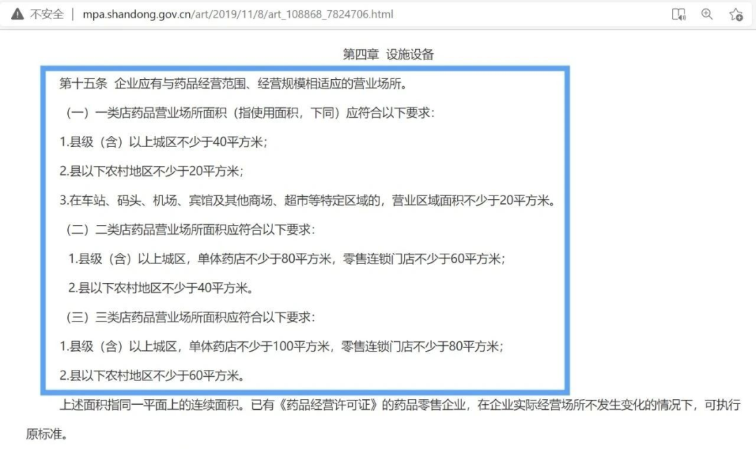 據(jù)了解,之前石家莊對(duì)藥品零售企業(yè)經(jīng)營(yíng)場(chǎng)所最低使用面積的要求是:市內(nèi)五區(qū)不得低于80平方米,縣城區(qū)域不得低于60平方米,鄉(xiāng)鎮(zhèn)及農(nóng)村不得低于40平方米。