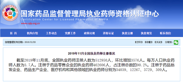 在12月20日,國(guó)家藥品監(jiān)督管理局發(fā)布了“2019年11月全國(guó)執(zhí)業(yè)藥師注冊(cè)情況”:截至2019年11月底,全國(guó)執(zhí)業(yè)藥師注冊(cè)人數(shù)為512950人,環(huán)比增加3576人。每萬(wàn)人口執(zhí)業(yè)藥師人數(shù)為3.7人。注冊(cè)于藥品零售企業(yè)的執(zhí)業(yè)藥師462606人,占注冊(cè)總數(shù)的90.2%。所以說(shuō),執(zhí)業(yè)藥師數(shù)量還遠(yuǎn)遠(yuǎn)不足,中專(zhuān)考生抓緊最后機(jī)會(huì)報(bào)考!